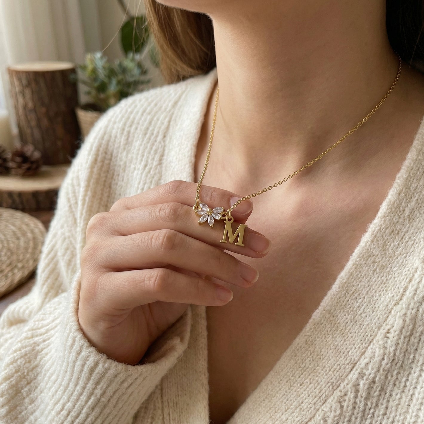 Choisissez l’initiale de votre choix pour un bijou unique, conçu en acier inoxydable 316L avec une finition en or, hypoallergénique et durable.